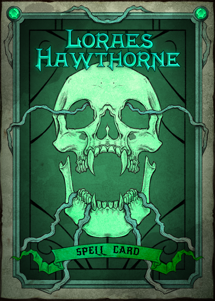 Because the card set was designed for a character in a gothic setting, I explored gothic illustration styles and incorporated skull motifs to reflect that tone. The character’s defining color, a sickly green, served as the foundation for a palette of complementary variants, carefully chosen to maintain visual cohesion and legibility when printed.