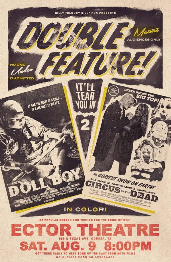 To maintain stylistic consistency and preserve brand recognition, I incorporated official marketing posters for the two films that shared a similar visual language. Using their existing artwork allowed the composition to remain immediately recognizable while supporting the overall vintage horror aesthetic.